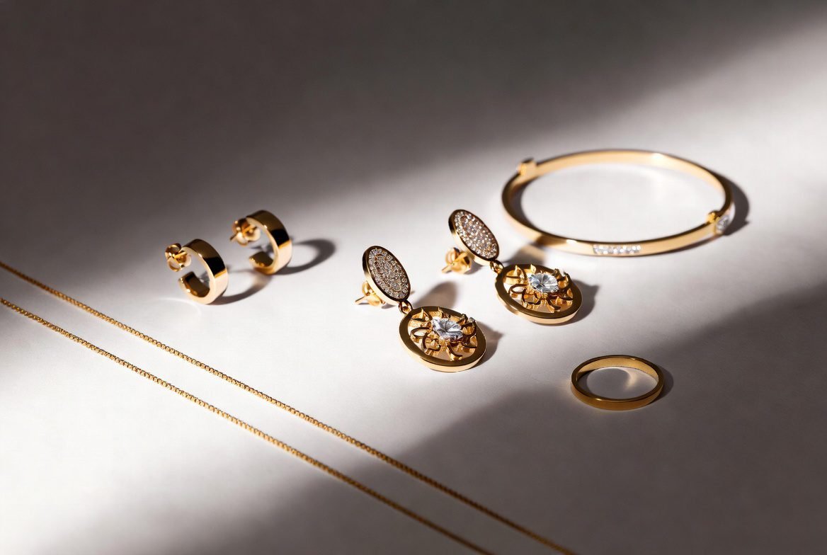 Here’s what I’d recommend as a foundation. One pair of small gold-tone studs or hoops. These go with literally everything. One statement earring pair for events. One simple chain or necklace. A set of thin bangles or a cuff. And one ring that isn’t too loud.